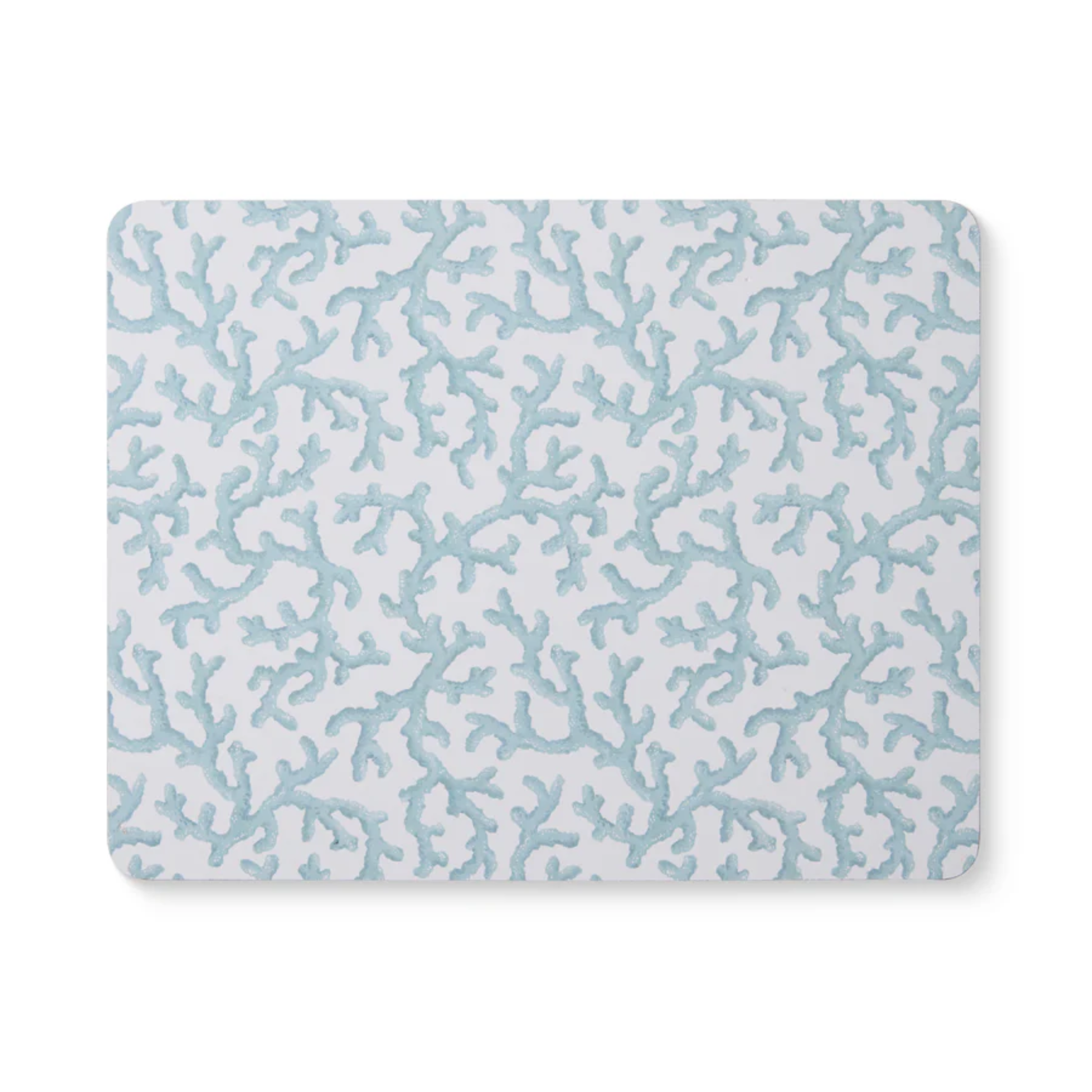 designed in Australia, these hard, wipe-clean placemats feature a hand-painted design of light blue coral on a rectangular shape. Ideal for daily use or elegant seaside-themed events, they bring a touch of coastal calm and charm to your table setting.